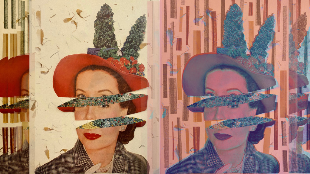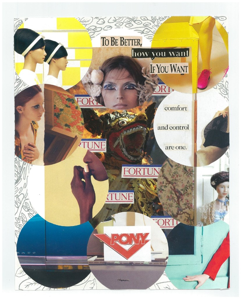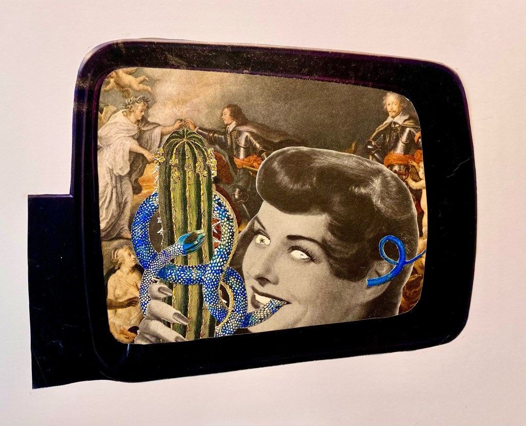 Collages At the Heart of it All, 2025. Inner Nature #2, 2025 Self Portrait Surrounded by Two Snakes and Four Nobody’s, 2025. And Then We Were All In One Place, 2025. Objects in Mirror are More Dangerous than They Appear, 2024. Joyride, 2024 Industria,2023. Published in Porter House Review. Sanctuary #1, 2023 Sanctuary #2, 2023. Prune, 2023 Constriction, 2023 Power Hungry, 2022. Published in The Northeast Review. The Face of God, 2022 Take My Love, 2021 Borders of Fortune, 2021 Zinnia’s Hidden Agenda, 2021 Borders of Generation Next, 2022 Casablanca, 2021